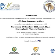 Πρόσκληση για τη θεσμοθετημένη εκδήλωση «ΜΝΗΜΕΣ ΚΑΤΕΧΟΜΕΝΗΣ ΓΗΣ»